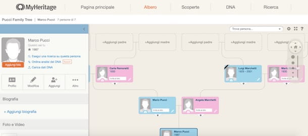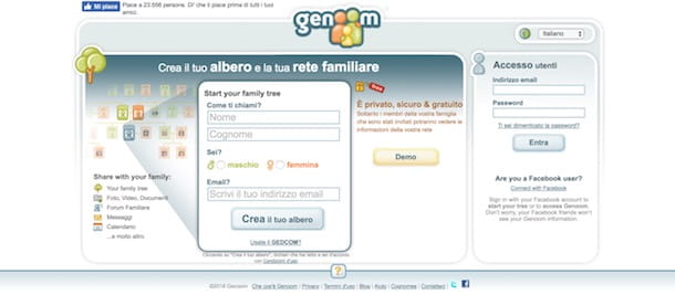 Genoom: is an online service that allows you to create a family tree without downloading any program. By creating a free account, it lets you add the various family members, create links and manage personal records. It also offers interesting features like the Family Forum to create discussions with other family members and the Calendar to enter and manage events. It is also available in a subscription version at a cost of 24 euros/year.