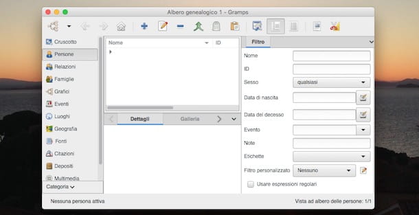 Gramps is an open source program for making family trees for free. It is available for Windows, macOS, Linux and features an intuitive interface that is completely translated into Italian. In addition to its native functions, it allows the addition of additional features through the installation of various extensions.