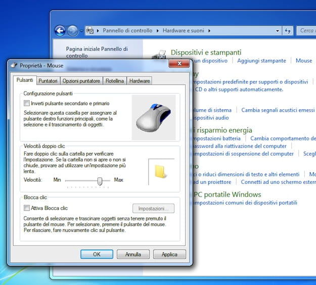 If you want to learn how to click quickly on Windows, click on the Start button and select Control Panel from the menu that appears. In the window that opens, go first to Hardware and Sound and then to Mouse to access the mouse (or trackpad, if you’re using a laptop) configuration panel.
