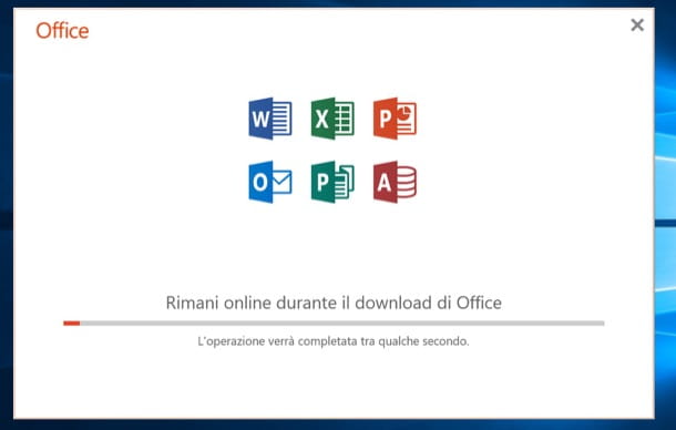 Once the download is complete, open the .exe file you obtained and wait patiently for all the components necessary to complete the Office installation to be downloaded from the Microsoft site. Once this operation (which may take several minutes) is finished, Office will be installed on your PC automatically. It’s as simple as that!