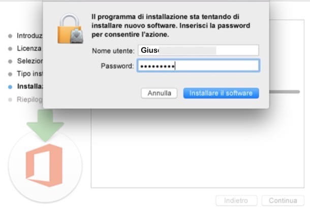 If everything went well, an automatic download of a .pkg package should start: once downloaded, open it and follow the wizard to complete the Office installation. Then press the Continue (twice in a row) and Accept buttons, choose the destination disk for the suite, press the Continue and Install buttons and provide the administration password for your macOS user account.